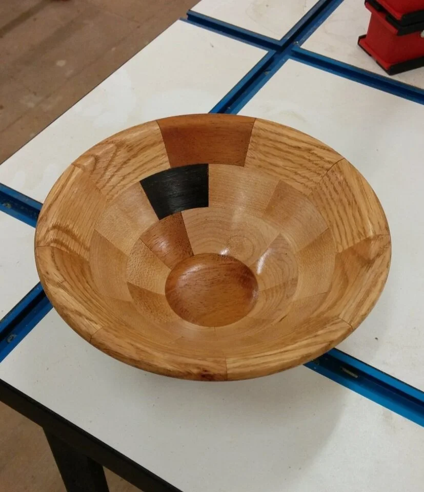 I've recently begun working on creating bowls from segmented rings. These bowls carry their own challenges but have the advantage of always presenting the most beautiful side grain on the most visible parts of the bowl (the interior and outer sides).